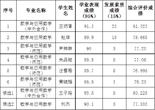 综合评价,院推免工作小组审定并经党政联席会议讨论通过,以下六名同学为2021级推免硕士研究生候选人,另有两名为候补人选(结合各专业名额分配,按综合成绩从高到低排序):