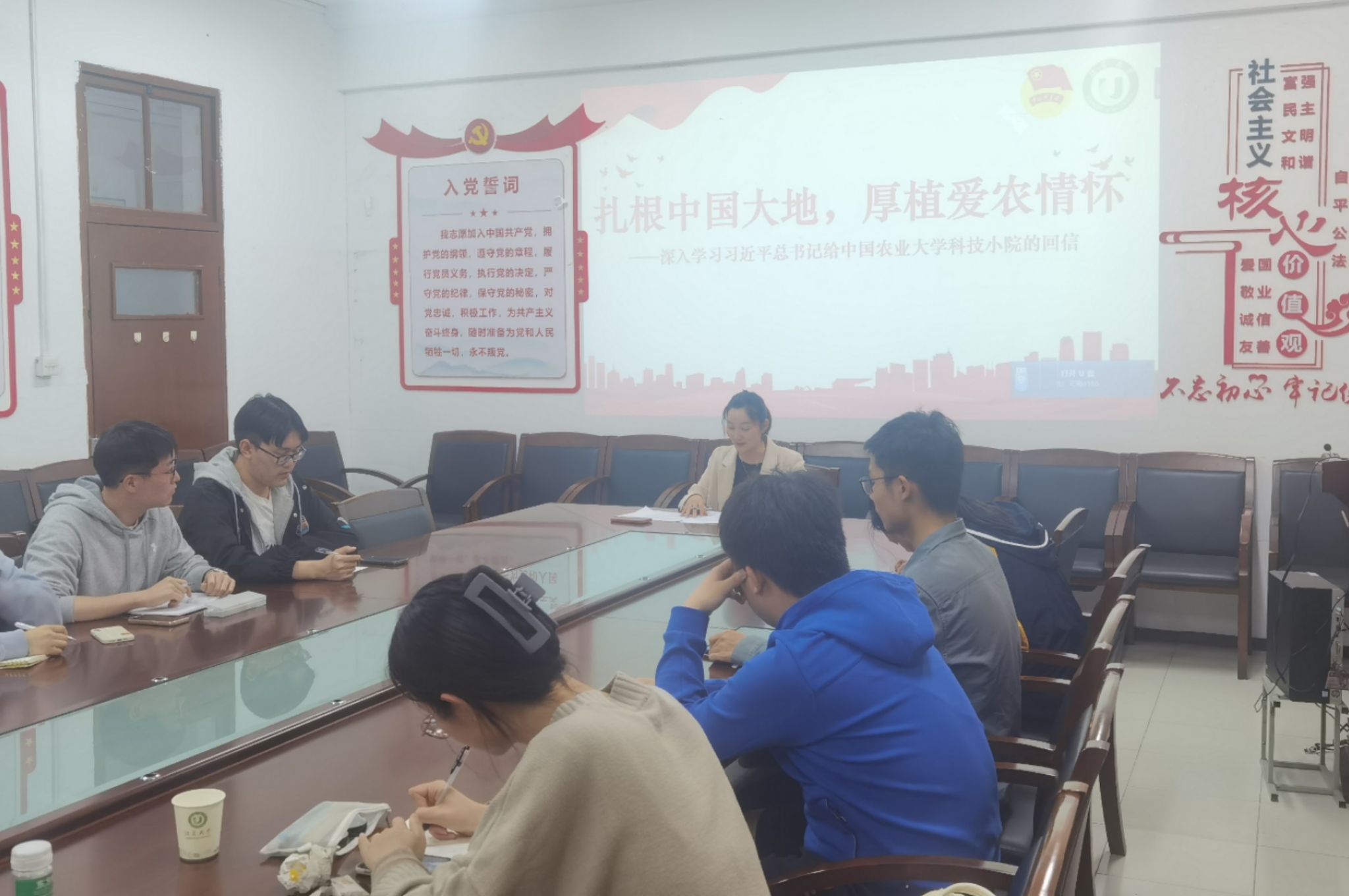 在数科院206会议室组织团学干部学习习近平总书记给中国农业大学科技小院学生的回信精神。学习会由bet365博彩