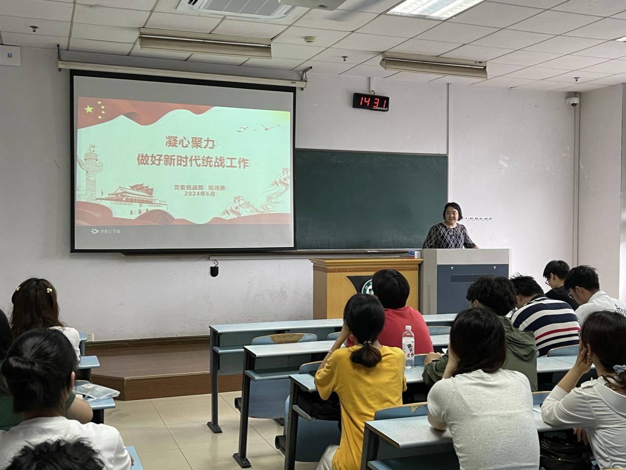 在三江楼0202教室举办统一战线专题讲座。本次讲座邀请到江苏大学党委统战部副部长倪鸿燕主讲,活动由bet365博彩