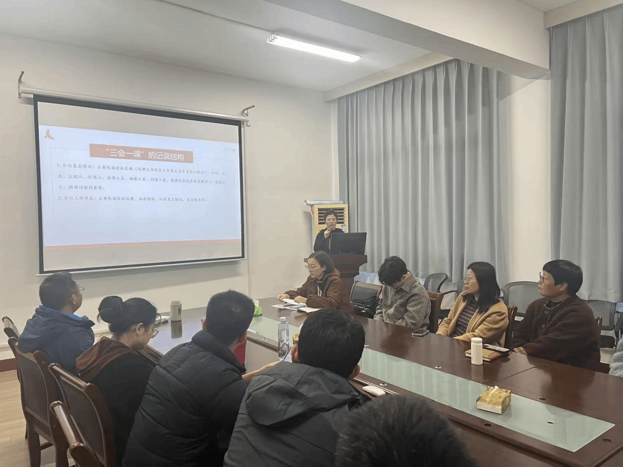 各基层党组织在年度考核中的整体表现,围绕政治建设、组织功能发挥、党员教育管理等核心维度,客观总结成效亮点,精准指出存在的短板不足,并明确了针对性改进方向。在此基础上,孙老师对2025年度党建考核指标进行全面拆解,逐一阐释新指标的设置背景、核心内涵与评价要点,帮助与会人员精准把握新时期党建工作的目标导向与实践要求,为推进党支部规范化建设、品牌化创建提供了清晰路径。
