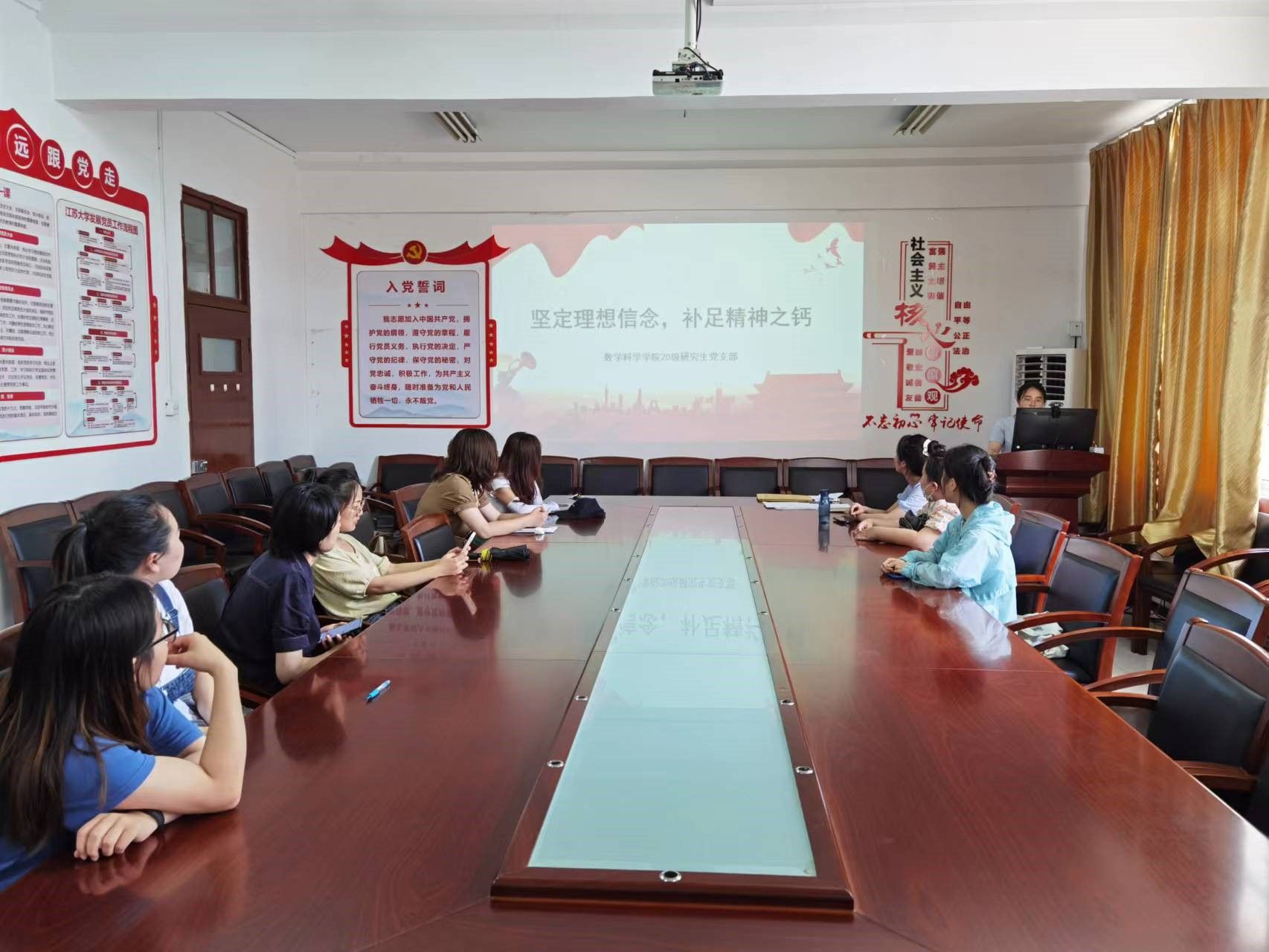 20级研究生党支部书记庄淑兰为支部党员讲授“坚定理想信念,补足精神之钙”的专题党课。
