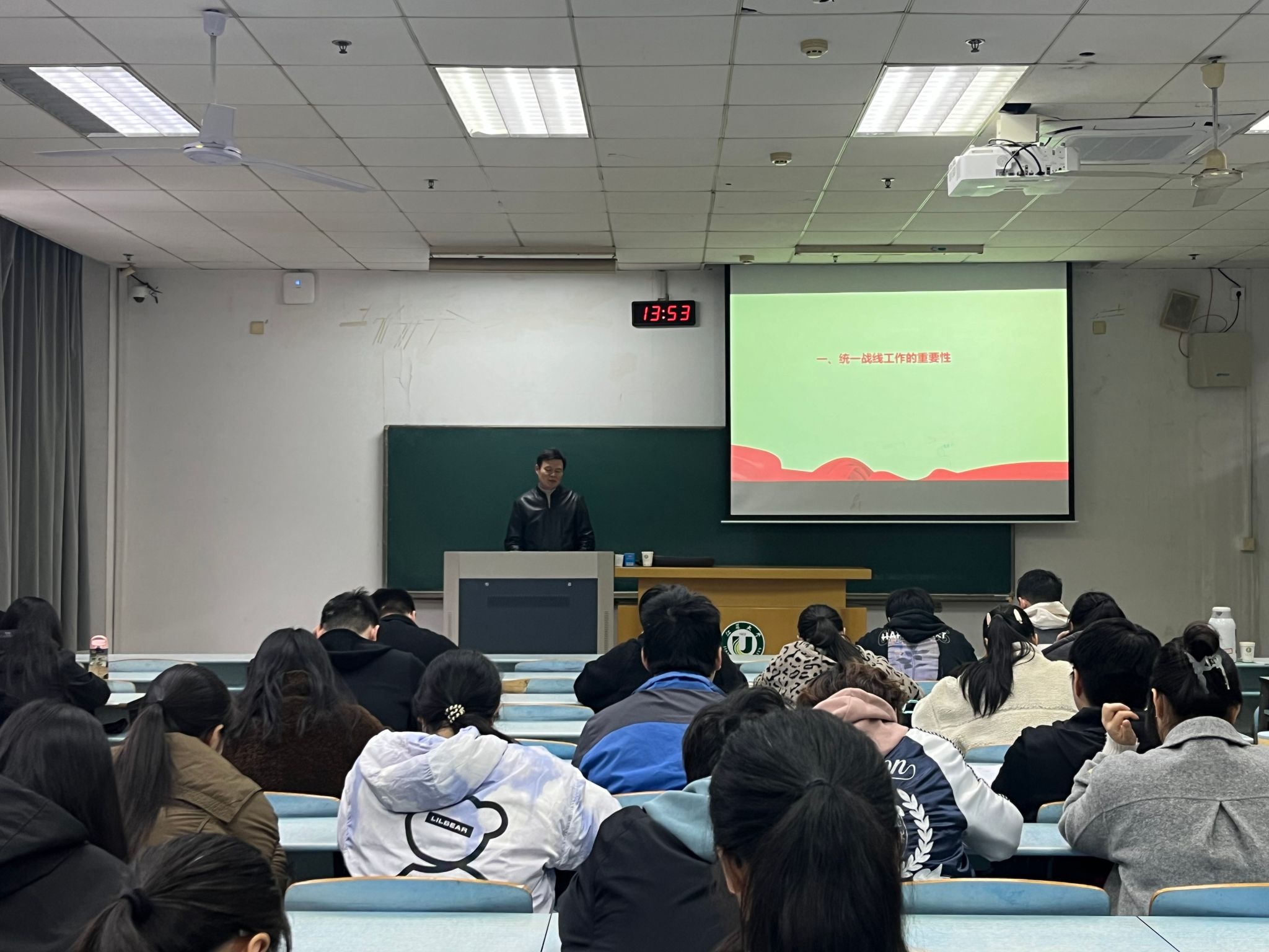 在三江楼附楼202开展统一战线专题讲座,本次讲座邀请到江苏大学党委统战部部长金玉成主讲,活动由bet365博彩