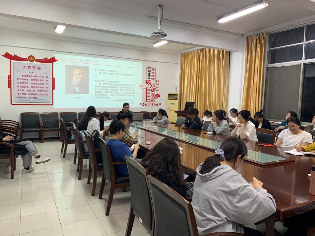 首先,王升从“什么是共产主义”这一问题出发,通过结合马克思、恩格斯、列宁等马克思主义经典作家的论述梳理了共产主义思想的精神内涵,接着结合中国共产党的历史实践,带领同学们回顾了中国共产党在革命、建设、改革等各历史时期取得的伟大成就,从而说明没有中国共产党就没有新中国,只有社会主义才能救中国的这一朴素真理。最后,在互动环节,现场的入党积极分子同学分享了自己的心得体会。