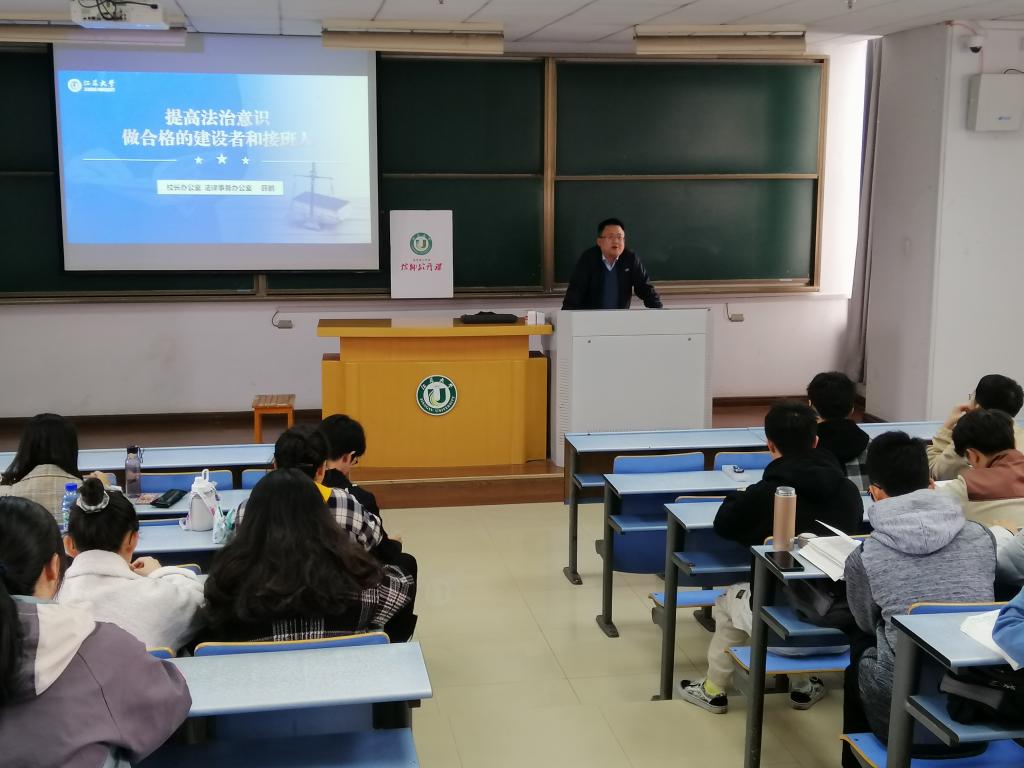 在三江楼515举办法治宣传教育主题讲座,邀请校长办公室、法律事务办公室副主任薛鹏担任主讲,bet365博彩