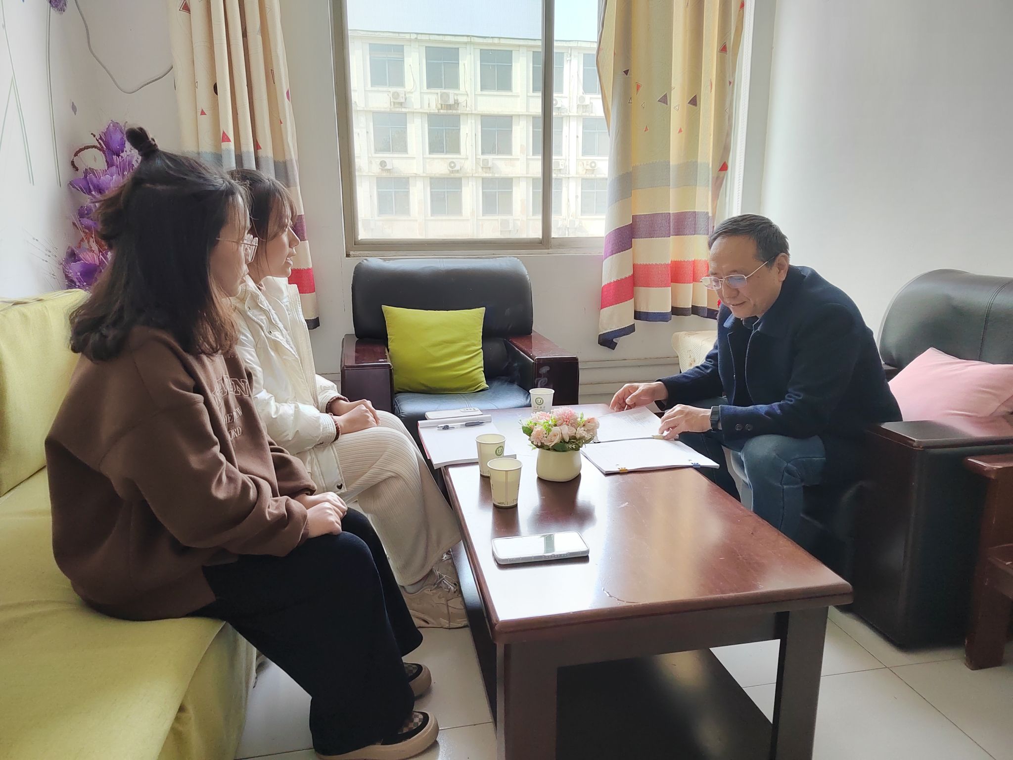 两位伯藜学子与冯老师交谈了自己的学业规划。张越同学计划考取数学类研究生,冯老师向其推荐了相关院校以及学校的考试难度。李文丽同学将有很大概率保研,冯老师就她感兴趣的统计学考研形势进行了具体分析。