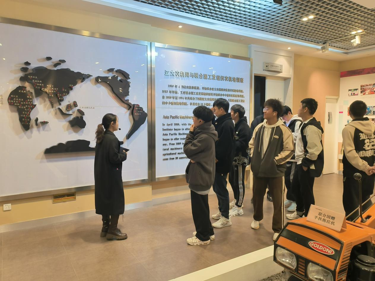 随后,同学们参观了农机文化展示馆,近距离观察农机模型,观看图文讲解和视频介绍,了解了中国农机文化的发展,深刻领会了江苏大学“工中有农、以工支农”的鲜明办学特色。