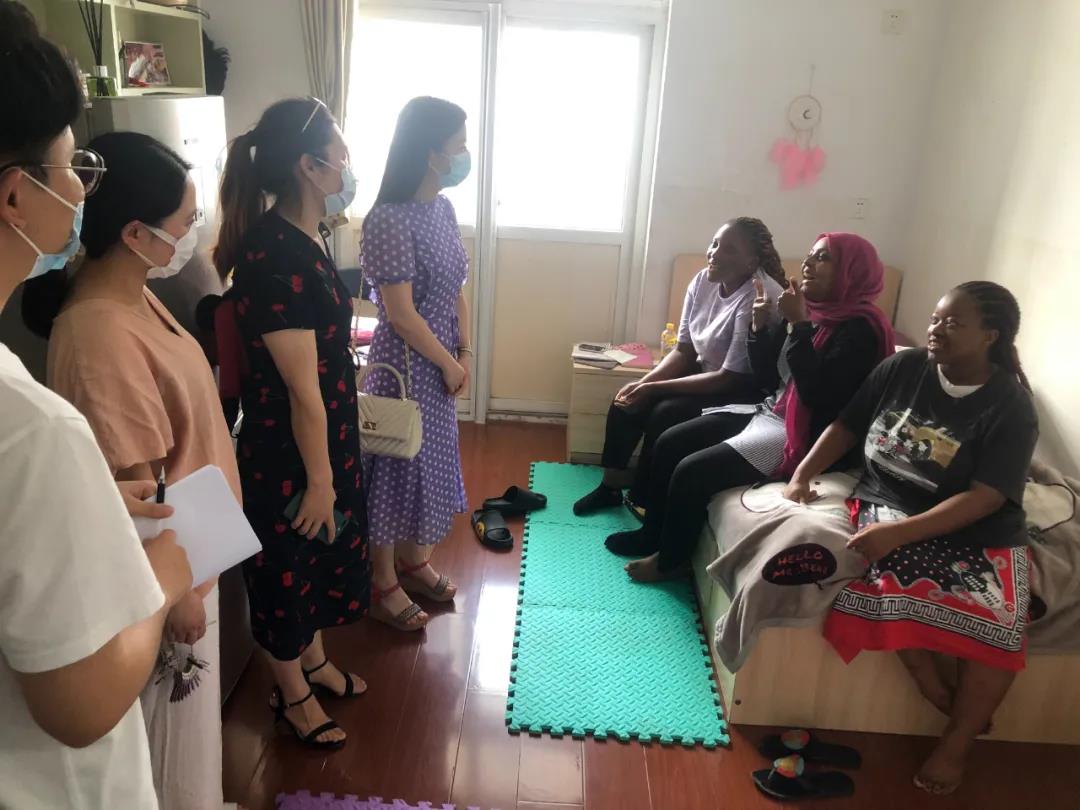The working group was divided into two groups, separately led by Huang Ting, Executive Deputy Secretary of the CPC OEC Branch, and Cui Yong, Vice Dean of OEC. The teachers visited on-campus students from different countries, including Russia, Cuba, Zimbabwe, Denmark, Ghana, India, Solomon, Côte d’Ivoire, Nigeria, Zambia, Cameroon, Burundi, D.R. Congo, and Malawi. The teachers explained the relevant policies about the school lockdown management during the epidemic patiently and carefully, cared about the daily life of international students, and asked for suggestions for the purchase of groceries and psychological consultation. Also it is mentioned that our students should continuously enhance their awareness of self-protection, keep the dormitory clean and ventilated, and actively cooperate with the school during the epidemic prevent and control.