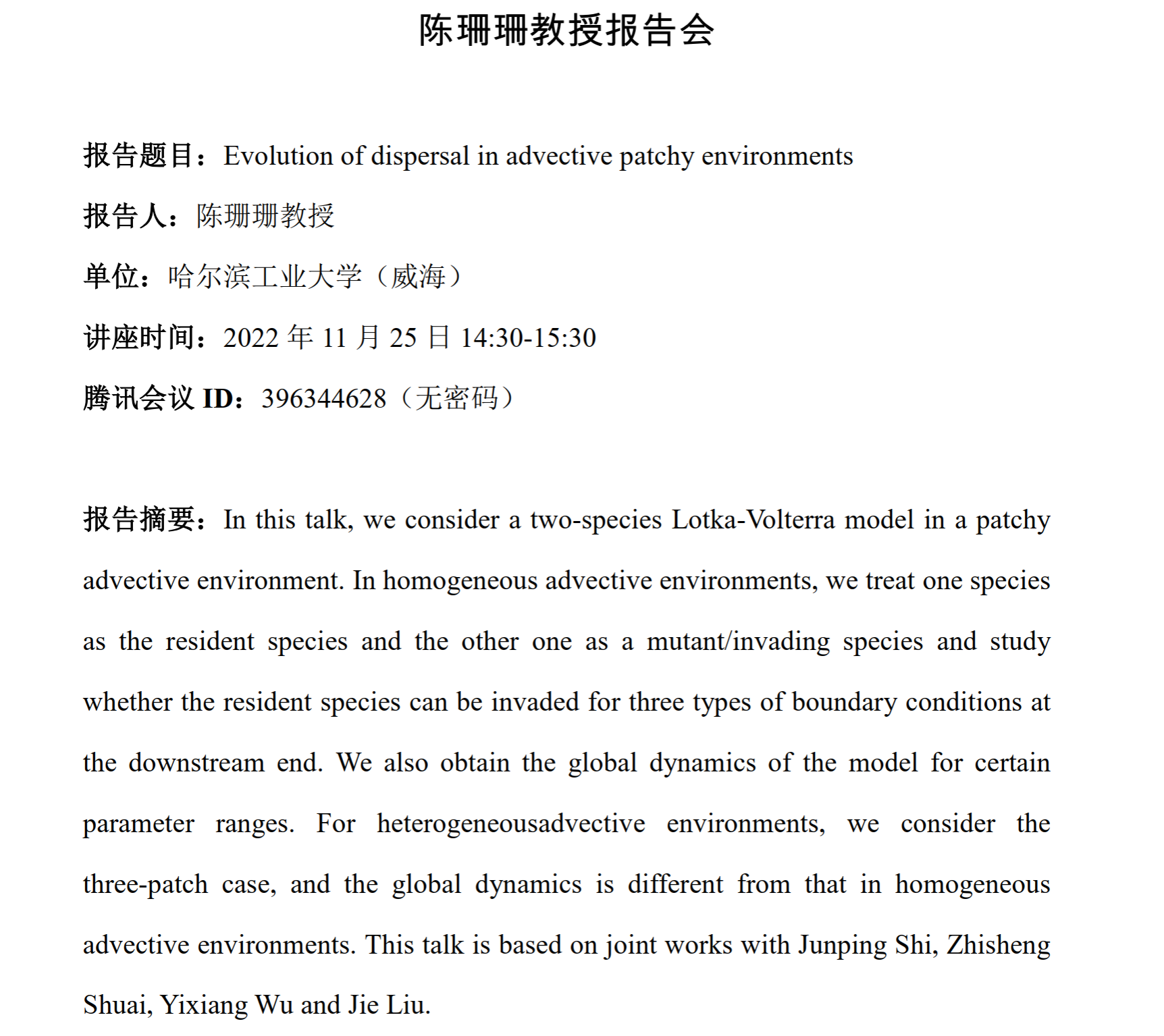 Academic Lecture of Professor Shanshan Chen